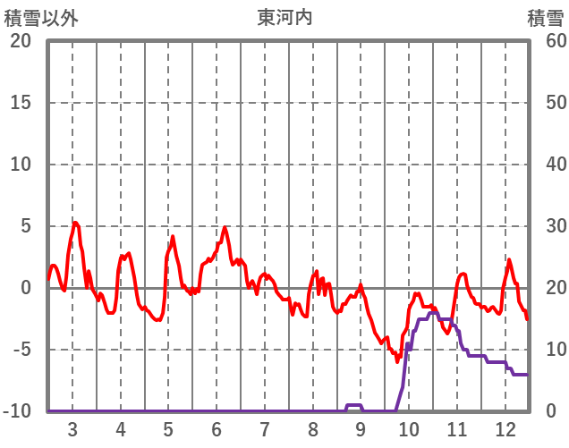 | 日 | 時 | 気温 | 降水 | 風向/風速 | 日照 | 積雪 | 降雪 |
