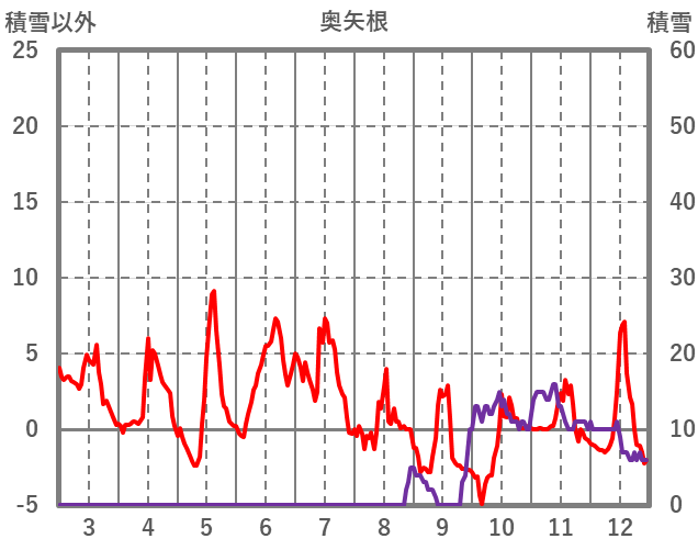 | 日 | 時 | 気温 | 降水 | 風向/風速 | 日照 | 積雪 | 降雪 |