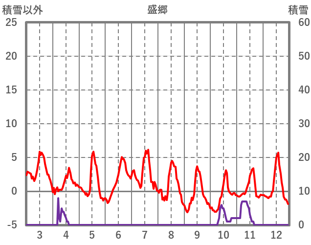 | 日 | 時 | 気温 | 降水 | 風向/風速 | 日照 | 積雪 | 降雪 |