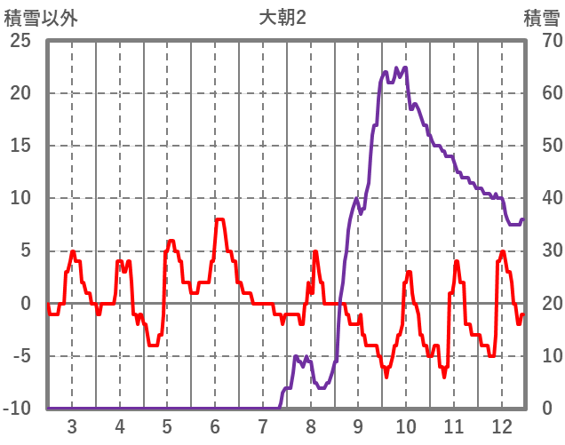 | 日 | 時 | 気温 | 降水 | 風向/風速 | 日照 | 積雪 | 降雪 |