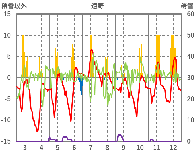 | 日 | 時 | 気温 | 降水 | 風向/風速 | 日照 | 積雪 | 降雪 |