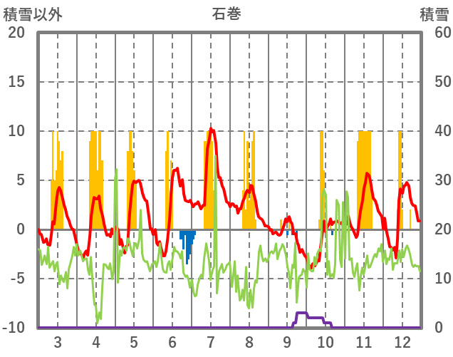 | 日 | 時 | 気温 | 降水 | 風向/風速 | 日照 | 積雪 | 降雪 |