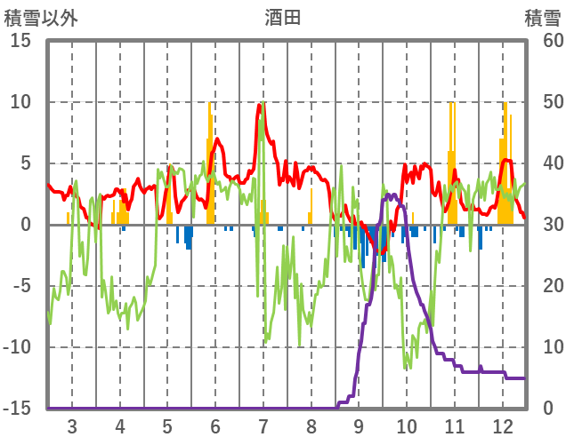 | 日 | 時 | 気温 | 降水 | 風向/風速 | 日照 | 積雪 | 降雪 |