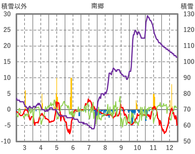 | 日 | 時 | 気温 | 降水 | 風向/風速 | 日照 | 積雪 | 降雪 |