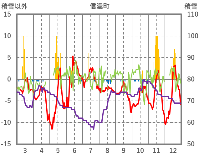 | 日 | 時 | 気温 | 降水 | 風向/風速 | 日照 | 積雪 | 降雪 |