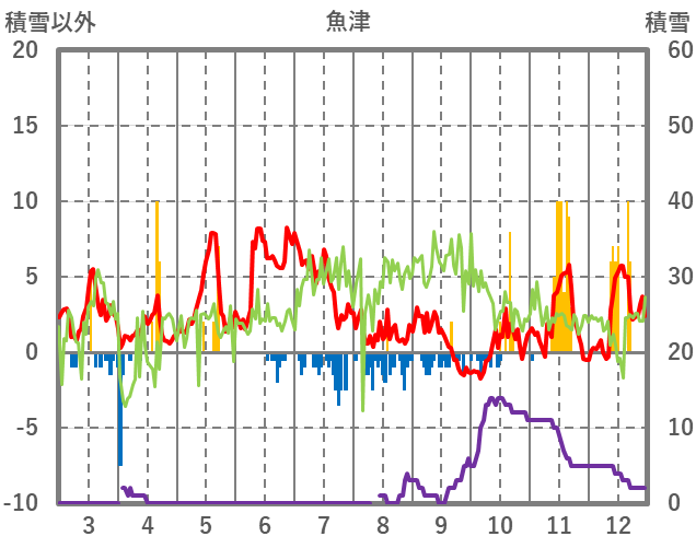 | 日 | 時 | 気温 | 降水 | 風向/風速 | 日照 | 積雪 | 降雪 |
