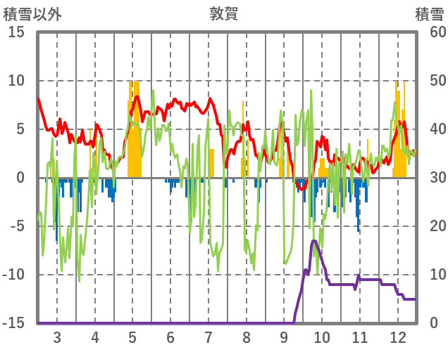 | 日 | 時 | 気温 | 降水 | 風向/風速 | 日照 | 積雪 | 降雪 |