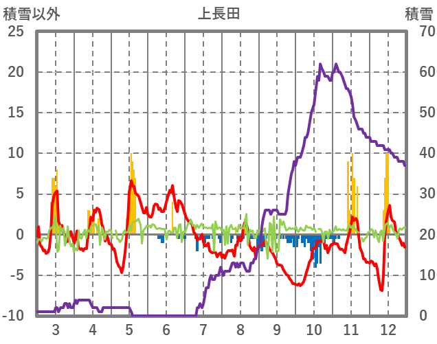 | 日 | 時 | 気温 | 降水 | 風向/風速 | 日照 | 積雪 | 降雪 |