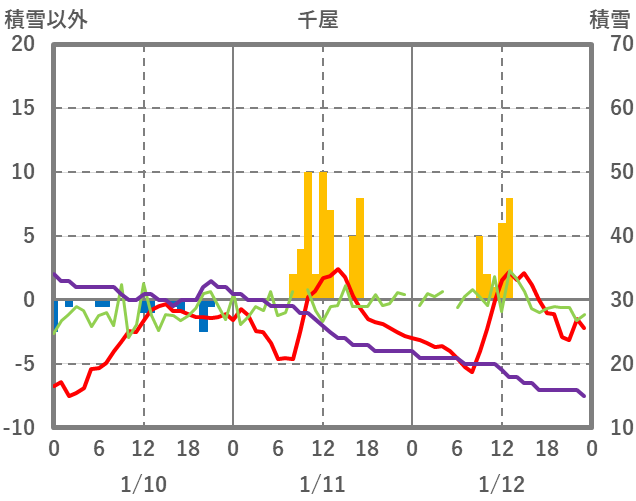 | 日 | 時 | 気温 | 降水 | 風向/風速 | 日照 | 積雪 | 降雪 |