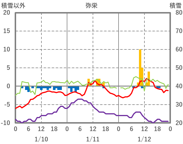 | 日 | 時 | 気温 | 降水 | 風向/風速 | 日照 | 積雪 | 降雪 |