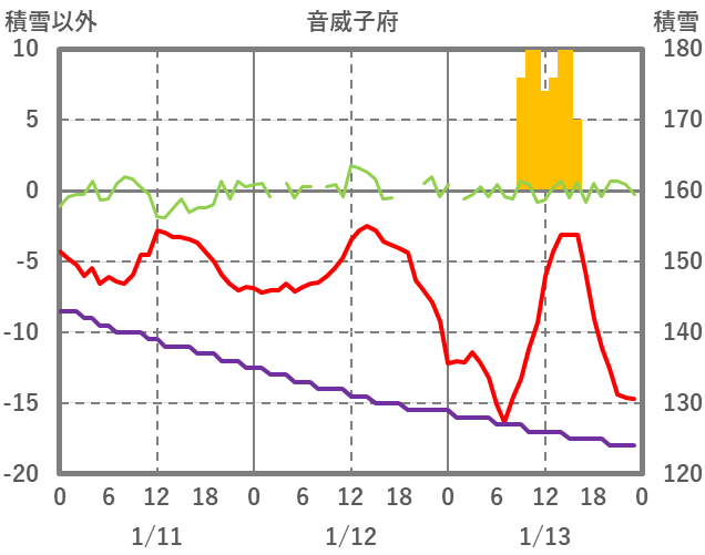 | 日 | 時 | 気温 | 降水 | 風向/風速 | 日照 | 積雪 | 降雪 |