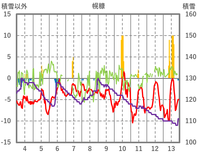 | 日 | 時 | 気温 | 降水 | 風向/風速 | 日照 | 積雪 | 降雪 |