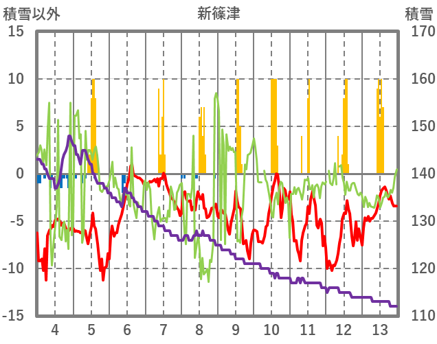 | 日 | 時 | 気温 | 降水 | 風向/風速 | 日照 | 積雪 | 降雪 |