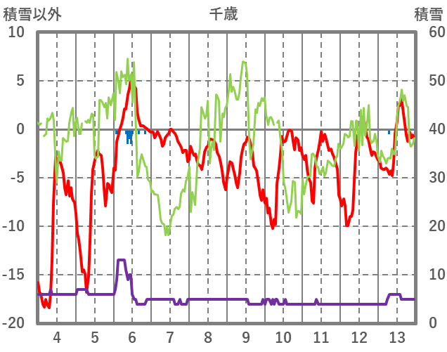 | 日 | 時 | 気温 | 降水 | 風向/風速 | 日照 | 積雪 | 降雪 |