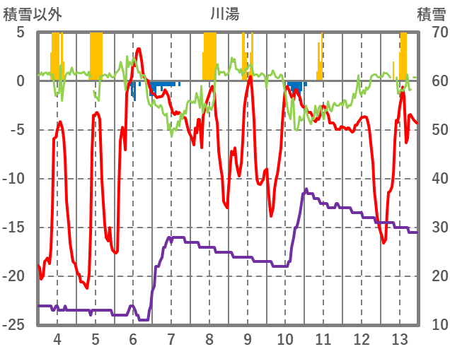 | 日 | 時 | 気温 | 降水 | 風向/風速 | 日照 | 積雪 | 降雪 |