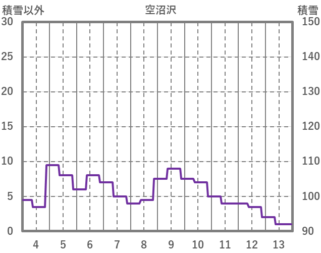 | 日 | 時 | 気温 | 降水 | 風向/風速 | 日照 | 積雪 | 降雪 |