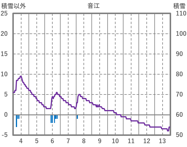 | 日 | 時 | 気温 | 降水 | 風向/風速 | 日照 | 積雪 | 降雪 |