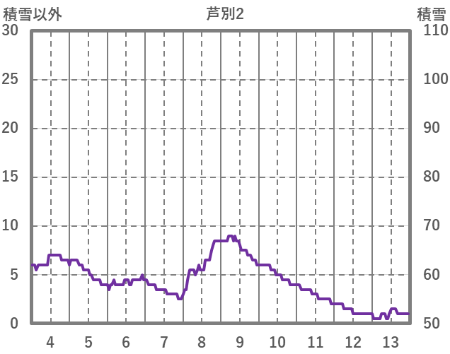 | 日 | 時 | 気温 | 降水 | 風向/風速 | 日照 | 積雪 | 降雪 |