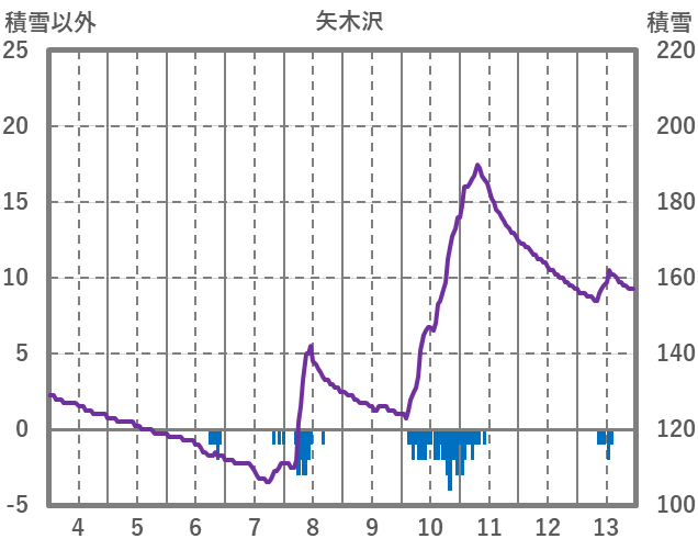 | 日 | 時 | 気温 | 降水 | 風向/風速 | 日照 | 積雪 | 降雪 |