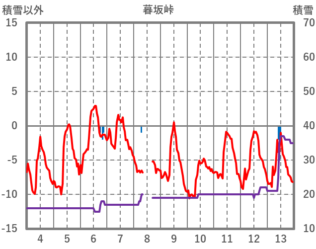 | 日 | 時 | 気温 | 降水 | 風向/風速 | 日照 | 積雪 | 降雪 |