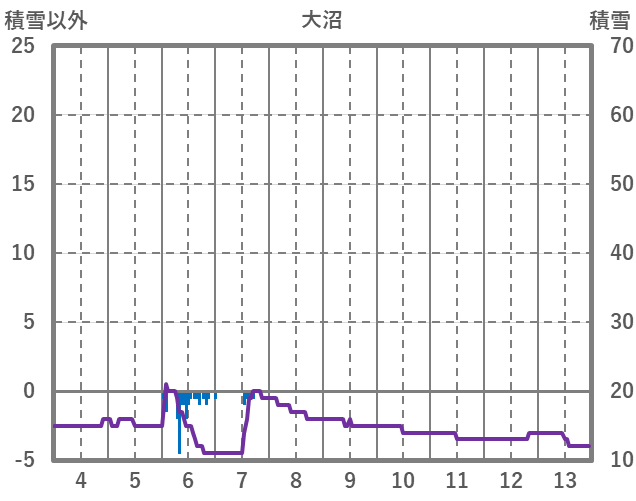 | 日 | 時 | 気温 | 降水 | 風向/風速 | 日照 | 積雪 | 降雪 |