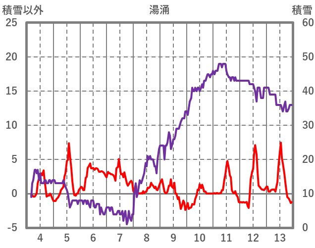 | 日 | 時 | 気温 | 降水 | 風向/風速 | 日照 | 積雪 | 降雪 |