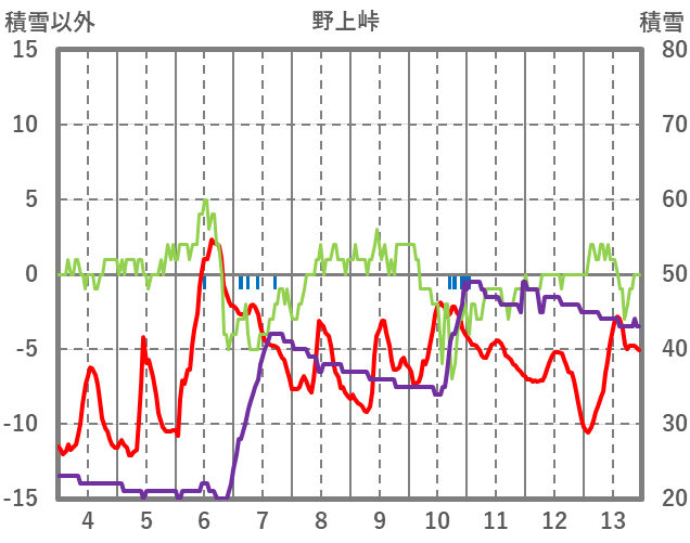 | 日 | 時 | 気温 | 降水 | 風向/風速 | 日照 | 積雪 | 降雪 |