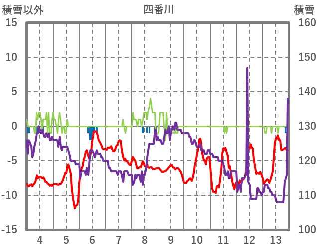 | 日 | 時 | 気温 | 降水 | 風向/風速 | 日照 | 積雪 | 降雪 |