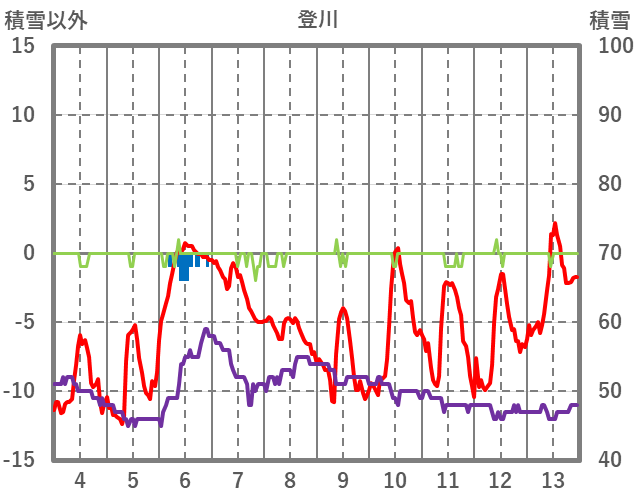 | 日 | 時 | 気温 | 降水 | 風向/風速 | 日照 | 積雪 | 降雪 |
