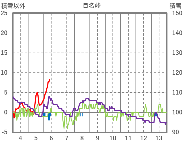 | 日 | 時 | 気温 | 降水 | 風向/風速 | 日照 | 積雪 | 降雪 |