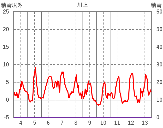 | 日 | 時 | 気温 | 降水 | 風向/風速 | 日照 | 積雪 | 降雪 |