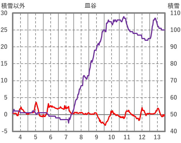 | 日 | 時 | 気温 | 降水 | 風向/風速 | 日照 | 積雪 | 降雪 |