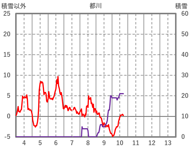 | 日 | 時 | 気温 | 降水 | 風向/風速 | 日照 | 積雪 | 降雪 |