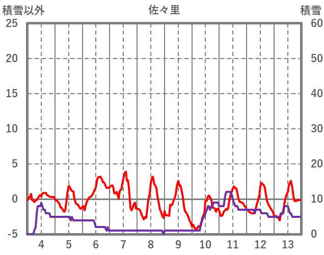 | 日 | 時 | 気温 | 降水 | 風向/風速 | 日照 | 積雪 | 降雪 |