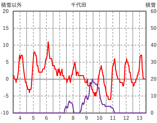 | 日 | 時 | 気温 | 降水 | 風向/風速 | 日照 | 積雪 | 降雪 |