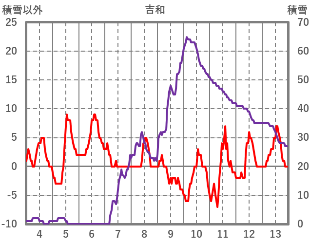 | 日 | 時 | 気温 | 降水 | 風向/風速 | 日照 | 積雪 | 降雪 |