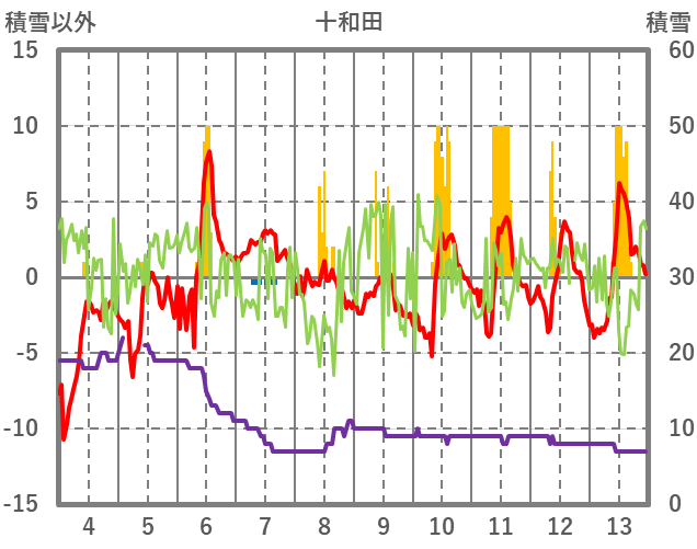| 日 | 時 | 気温 | 降水 | 風向/風速 | 日照 | 積雪 | 降雪 |