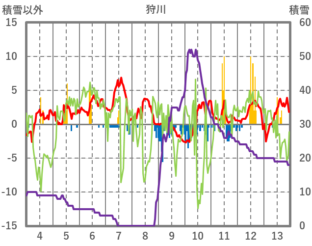 | 日 | 時 | 気温 | 降水 | 風向/風速 | 日照 | 積雪 | 降雪 |