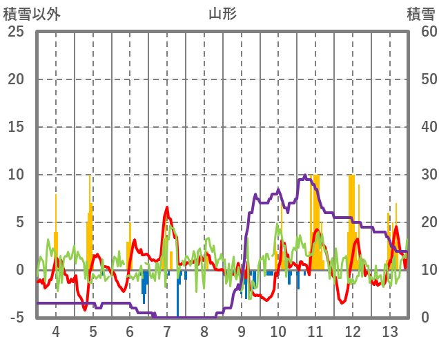 | 日 | 時 | 気温 | 降水 | 風向/風速 | 日照 | 積雪 | 降雪 |