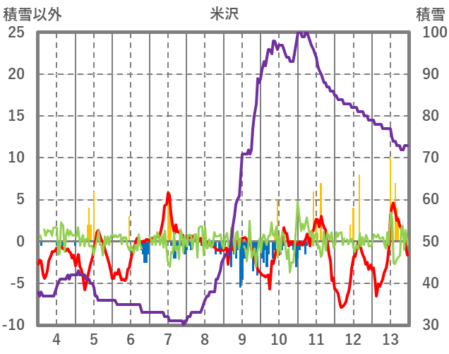 | 日 | 時 | 気温 | 降水 | 風向/風速 | 日照 | 積雪 | 降雪 |