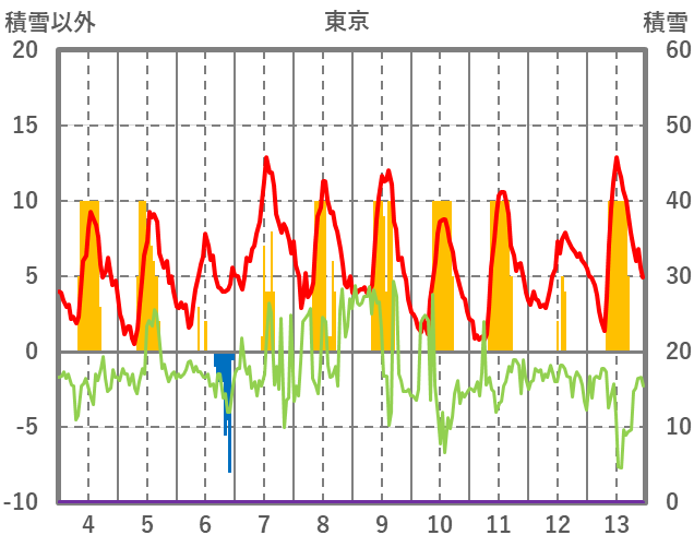 | 日 | 時 | 気温 | 降水 | 風向/風速 | 日照 | 積雪 | 降雪 |