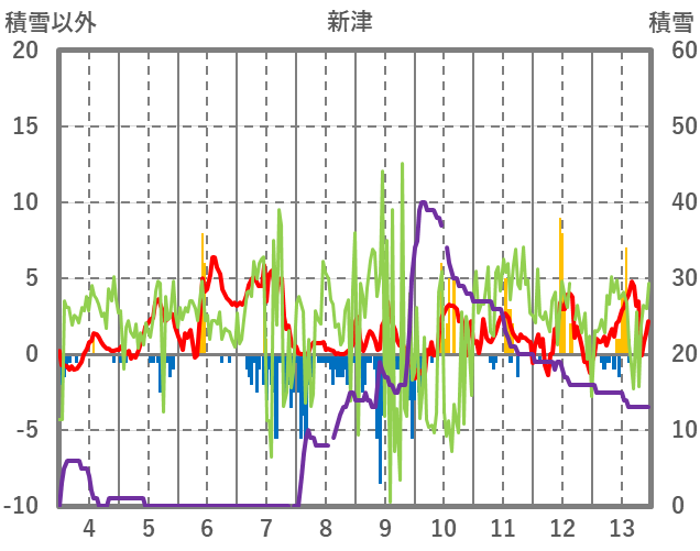 | 日 | 時 | 気温 | 降水 | 風向/風速 | 日照 | 積雪 | 降雪 |