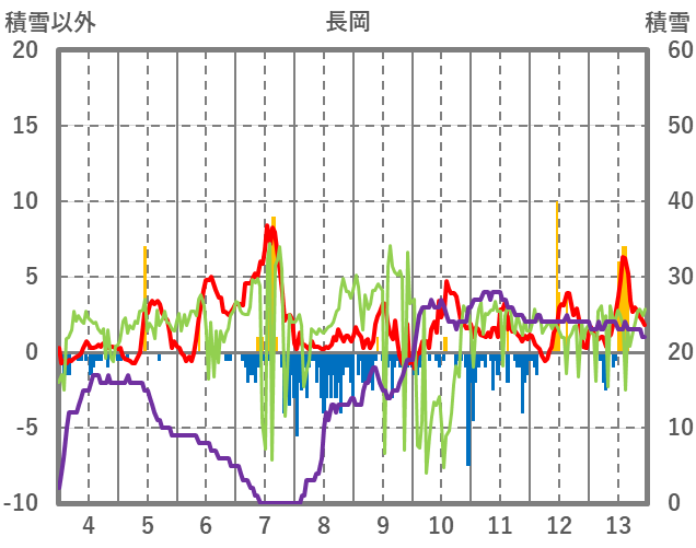 | 日 | 時 | 気温 | 降水 | 風向/風速 | 日照 | 積雪 | 降雪 |