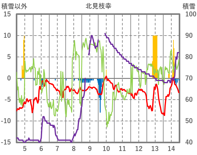 | 日 | 時 | 気温 | 降水 | 風向/風速 | 日照 | 積雪 | 降雪 |