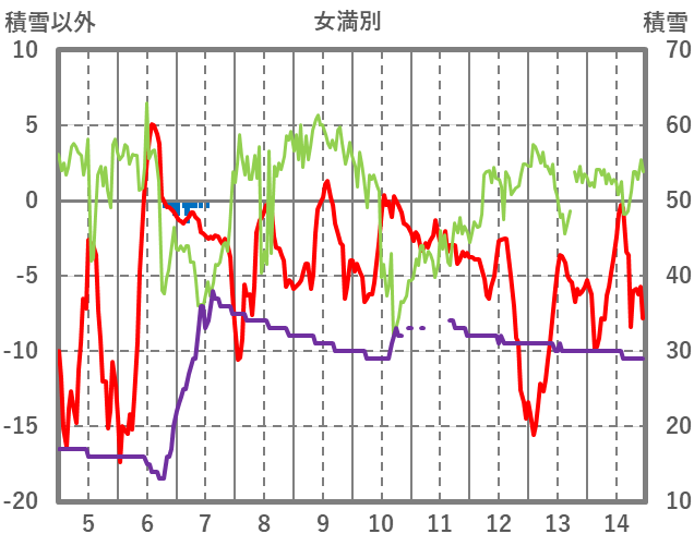 | 日 | 時 | 気温 | 降水 | 風向/風速 | 日照 | 積雪 | 降雪 |