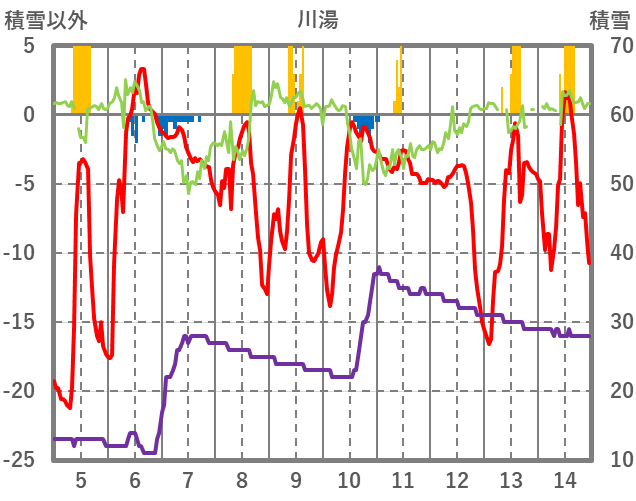 | 14 | -3.4 | 0.5 | NNW/4.8 | 0 | 28 | 0 | |