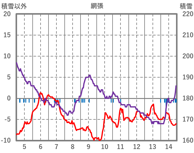 | 日 | 時 | 気温 | 降水 | 風向/風速 | 日照 | 積雪 | 降雪 |