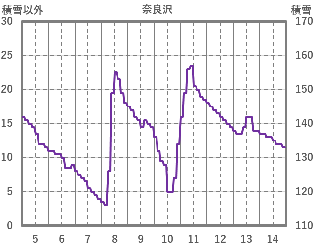 | 日 | 時 | 気温 | 降水 | 風向/風速 | 日照 | 積雪 | 降雪 |