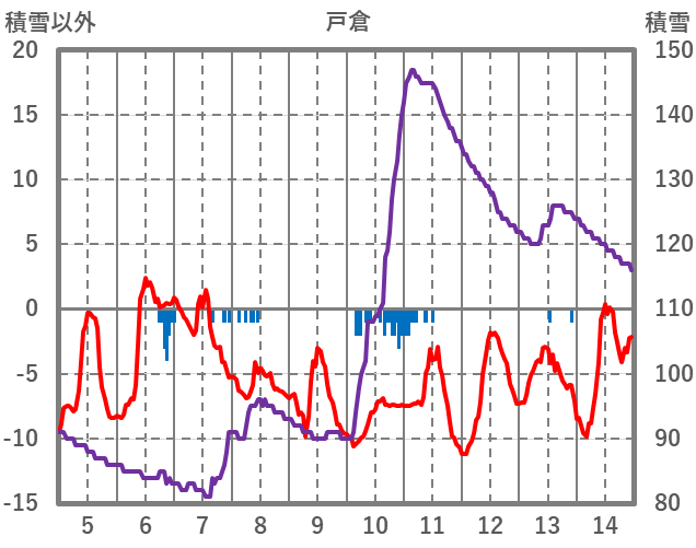 | 日 | 時 | 気温 | 降水 | 風向/風速 | 日照 | 積雪 | 降雪 |