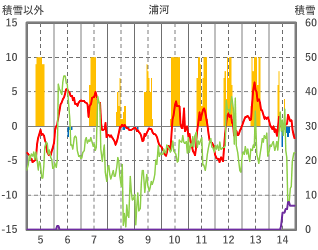 | 日 | 時 | 気温 | 降水 | 風向/風速 | 日照 | 積雪 | 降雪 |